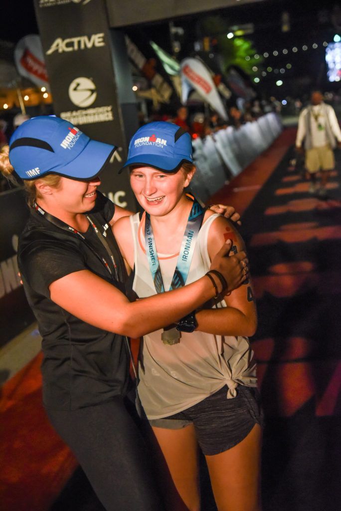 Kaylee and Morgan sharing an emotional and proud moment at the IRONMAN finish line. Thanks for all of our TEAM IMF Athletes for dedicating your race to #RaceForMore! (Image provided by: Tennessee Sports Pic’s)