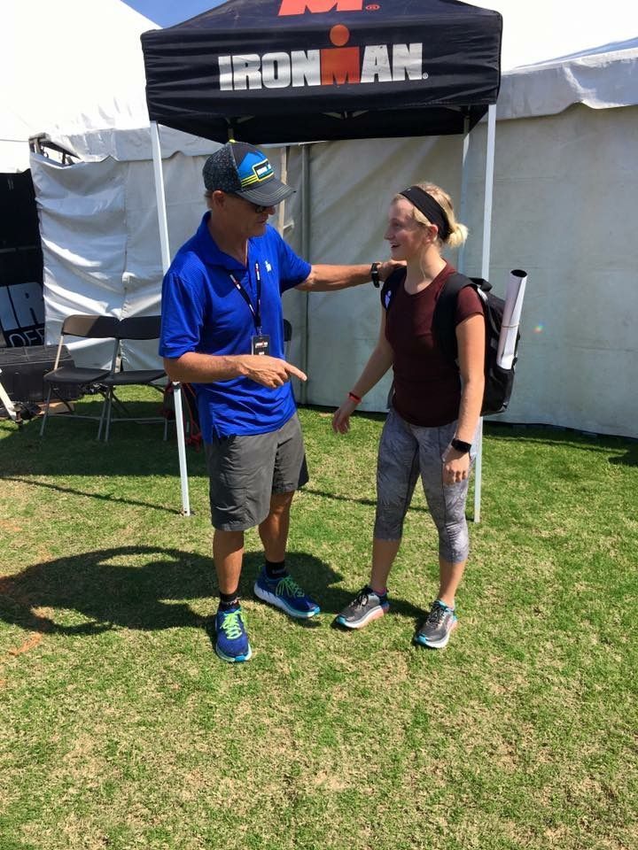Mike Reilly telling one of our TEAM IMF Athletes, Kalyee Susong, “You WILL cross that finish line this year!”