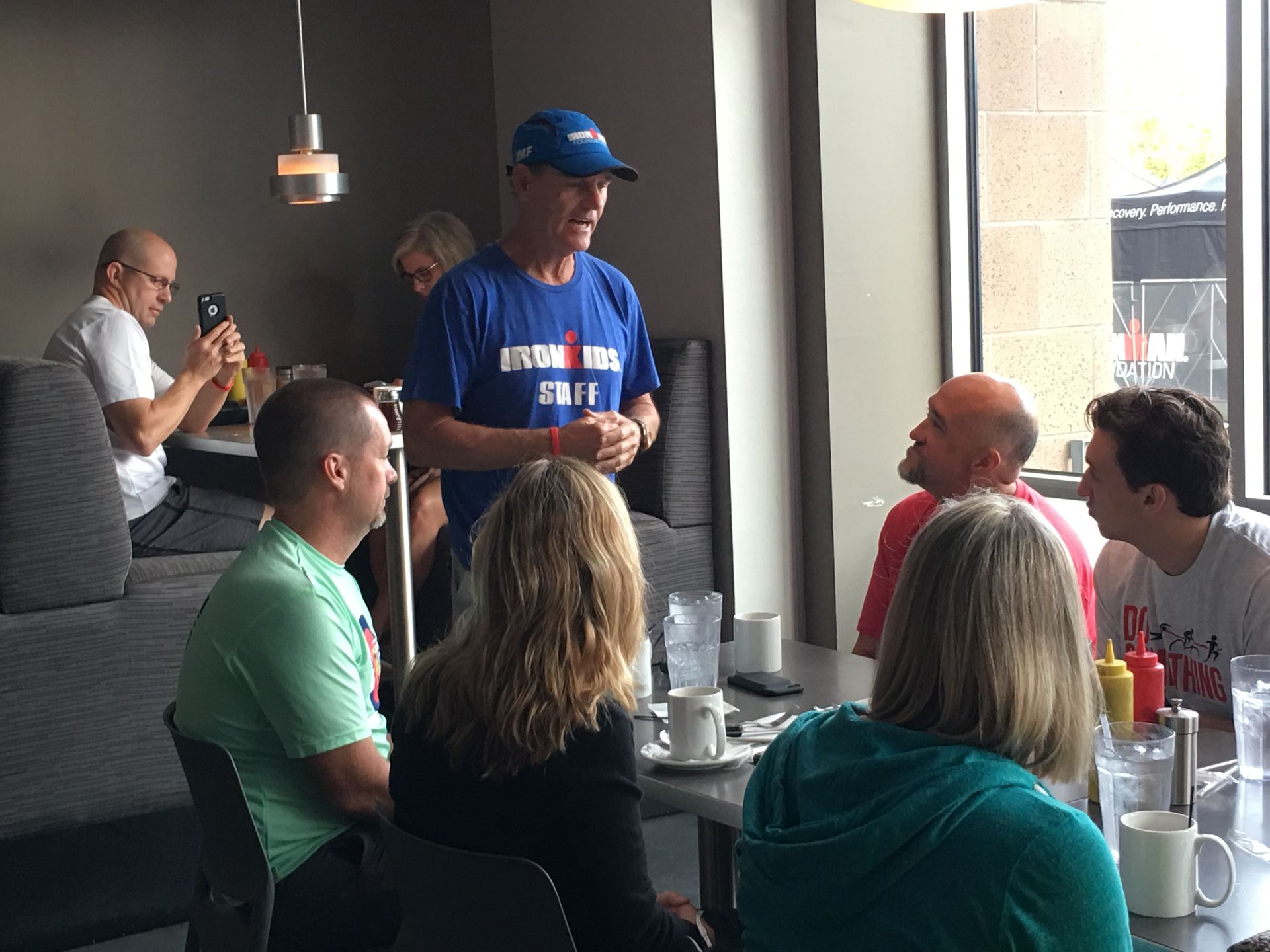 IMF Ambassador Captain and “The Voice of IRONMAN”, Mike Reilly, stopped by TEAM IMF’s breakfast to share a few words of thanks and encouragement for race day.