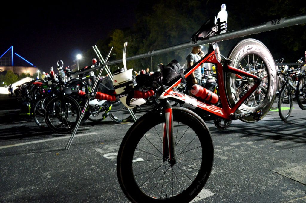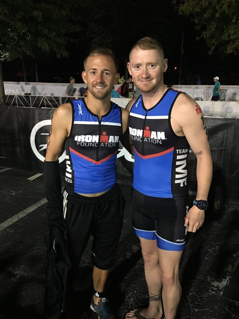 TEAM IMF teammates and best friends, Danny McBride and Colby Childress gearing up for the start of a great race day!This bike has seen many IRONMAN races!
