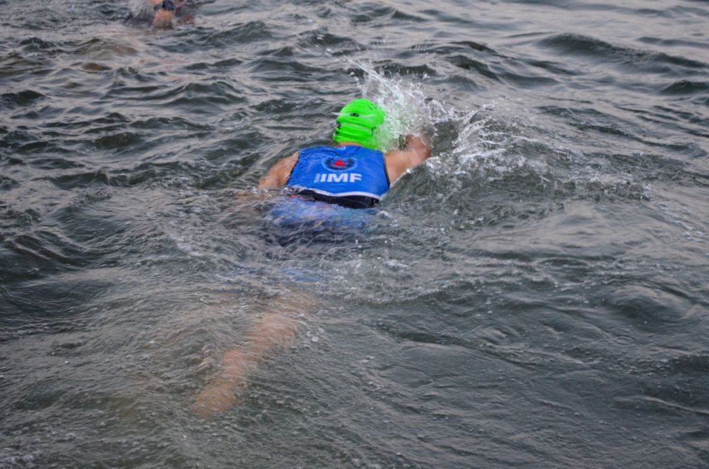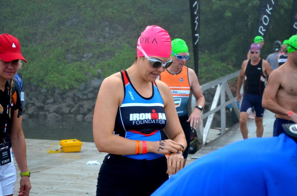 TEAM IMF Athlete, Kate Johnson, making sure her watch is ready to-go prior to jumping in!