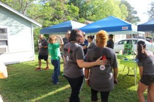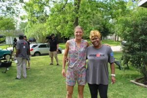 IRONMAN Foundation Community Relations Manager, Sarah Hartmann, spending time with Ms. Angela, the lovely homeowner whose house we restored. Prior to project day, Rebuilding Together Houston replaced Ms. Angela’s roof with a Community Grant from the IRONMAN Foundation.