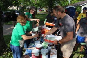 Volunteers getting ready to paint.