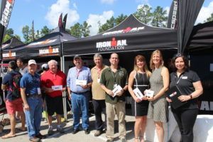 Community Grant Recipients after receiving the grant awards at a Thursday Morning Athlete Briefing. Over $100,000 was given back to the IRONMAN Texas Race Community this year!