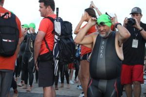IRONMAN Foundation Executive Director, Dave Deschenes, earned a coveted “Volunteer Appreciation” Bracelet for his awesome high-fives at the swim start.