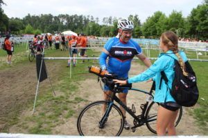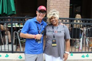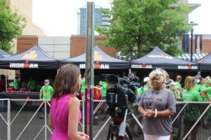 Mike Reilly “The Voice Of IRONMAN” and Ms. Angela got to meet on race day.