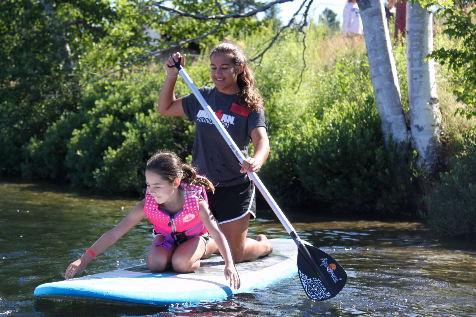 On Thursday, in partnership with the Lake Placid Outing Club, over 30 volunteers made up of IRONMAN Foundation Ambassadors, TEAM IMF and IRONMAN Athletes paired up with local kids from the Lake Placid community and together, learned how to stand-up paddleboard on Mirror Lake. IRONMAN Foundation Ambassador Team Captain Mike Reilly and Pro Triathlete Sarah Piampiano attended with other incredible volunteers. The day was filled with laughter and smiles, while the kids conquered their fears of being out on the open water!