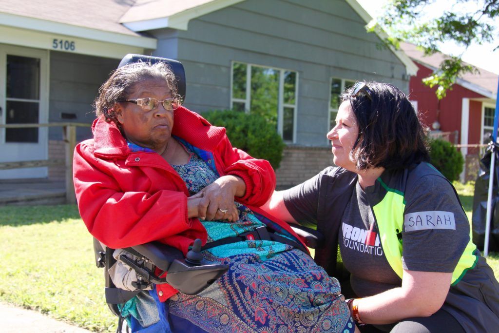 IRONMAN Texas race week kicked off with the IRONMAN Foundation’s third service project of the race season. On Thursday morning, 30 volunteers made up of IRONMAN athletes, family and IRONMAN Foundation Staff were welcomed into the homes of Ms. Dorothy and Mr. Ronald. Together they applied a fresh coat of paint on the exterior of Ms. Dorothy’s home and on inside of Mr. Ronald’s home. In addition, $35,000 was awarded to Rebuilding Together Houston, as they continue rebuilding homes in the Houston area post Hurricane Harvey.