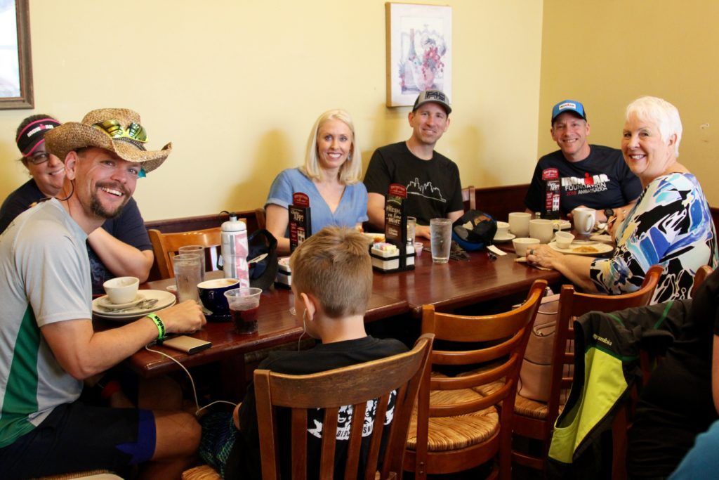Friday morning, 11 TEAM IMF Athletes, 3 IRONMAN Foundation Ambassadors, 1 Mālama Club member and their loved ones met at La Madeline French Bakery to celebrate over $40,000 of funds raised and all of their hard work and training before they tackled 140.6 miles the next day. This year, over $140,000 will go back into the IRONMAN Texas race community and will support over 150 nonprofits, bringing the overall giveback total up to $960,000. Joining the IRONMAN Foundation Athletes at breakfast were Acting Executive Director, Sarah Hartmann; the “Voice of IRONMAN” and IRONMAN Foundation Ambassador Team Captain, Mike Reilly; and the CEO of IRONMAN, Andrew Messick. Together they shared their love for the sport and the amazing change they create in their race communities.