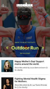 3. Before heading out for a run or a ride, open the Charity Miles app and select the IRONMAN Foundation as your charity of choice.